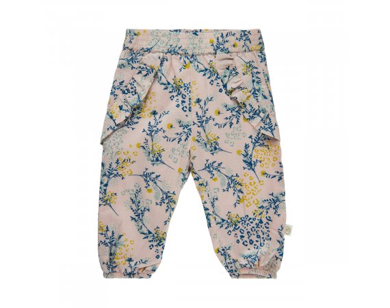 Yndig vævet rosa bukser med flotte print af blade i blå og gule nuancer. Buksen har en bred elastik i talje, fine flæser i sider og elastik ved ankler. De har en løs pasform, der giver velvære og god plads til bevægelse. Et par super skønne bukser der kan styles med rigtig mange fine toppe.Tekstil: 100 % bomuld