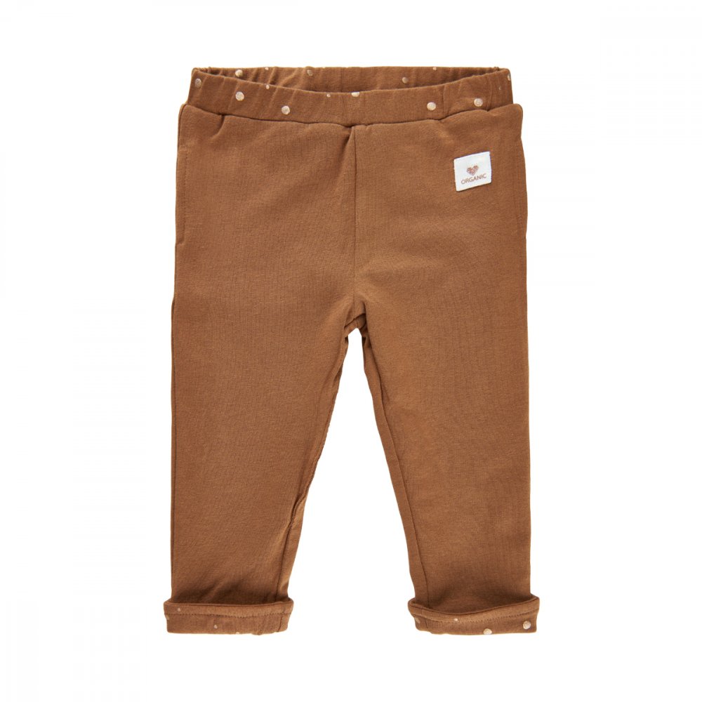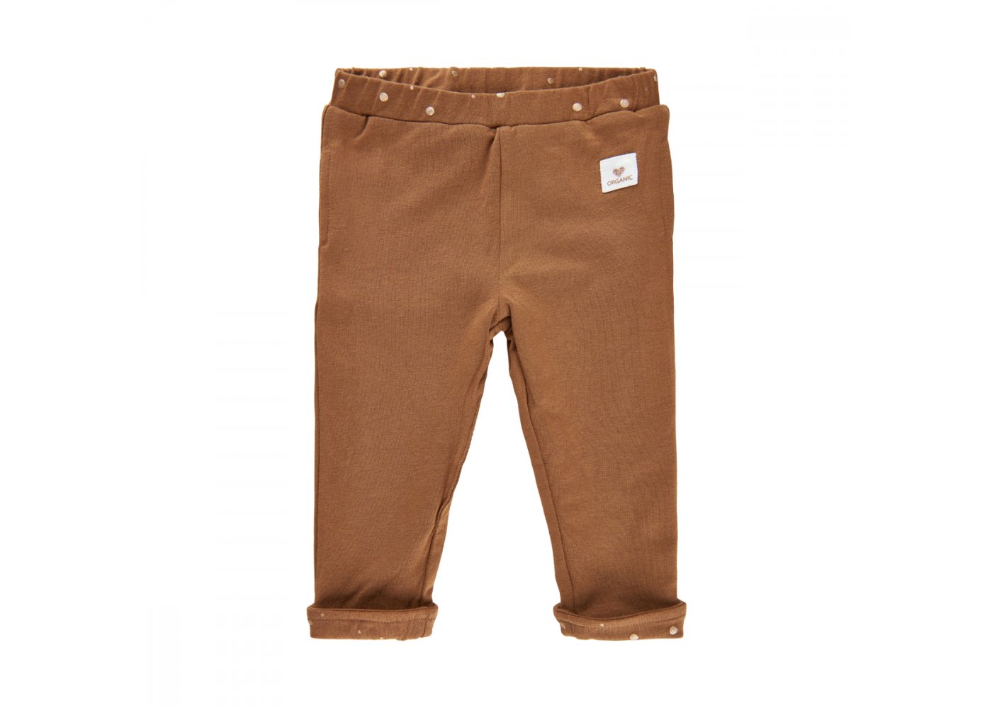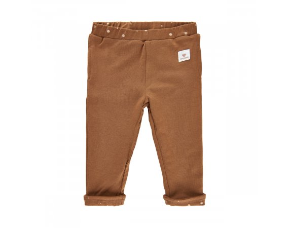Flotte og smarte vendbare brune bukser fra Minymo. Du får to par bukser i et - et par ensfarvet brune og et par brune med hvide prikker. Der kan laves smart opslag i kontrastfarve på buksen. Buksen har elastik i taljen, der gør dem behagelige at have på.Tekstil: 47% bomuld, 48% modal, 5% elasthan