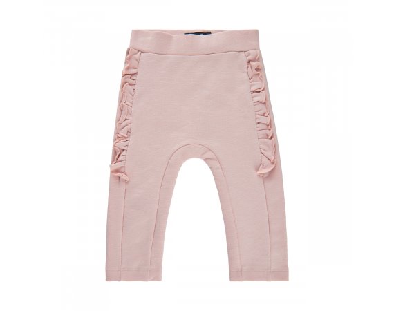 Yndige ensfarvede rosa bukser med baglommer fra Minymo. Buksen har en fin flæsekant ned langs bukseben og en bred rib-elastik i talje. Buksen er fremstillet i en skøn, strækbar bomuld, der gør den behagelig at have på. Et par super skønne bukser der kan styles med rigtig mange fine spraglede toppe.Tekstil: 95% økologisk bomuld, 5% elasthan GOTS-certificeret og STANDARD 100 by OEKO-TEX® godkendt