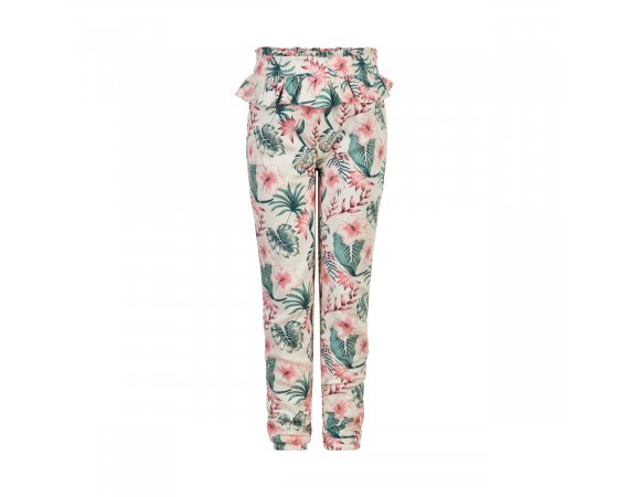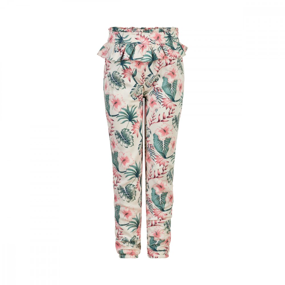 Super fine bukser i creme med smukke blomster og blade i rosa og grønne nuancer.