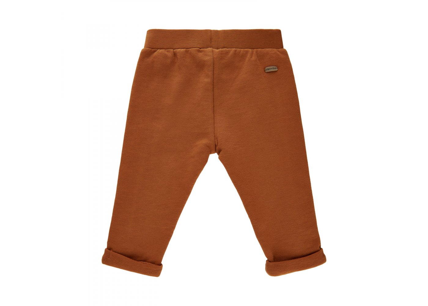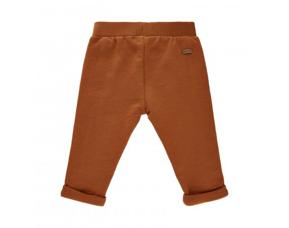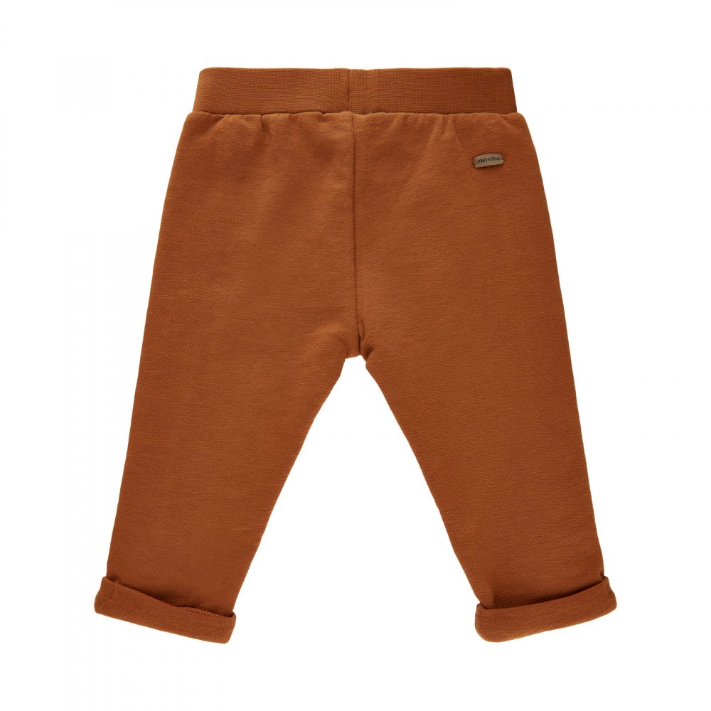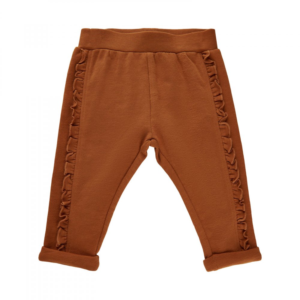 Smarte bukser i rust brun med bred elastisk rib i livet og ombuk ved ankler.