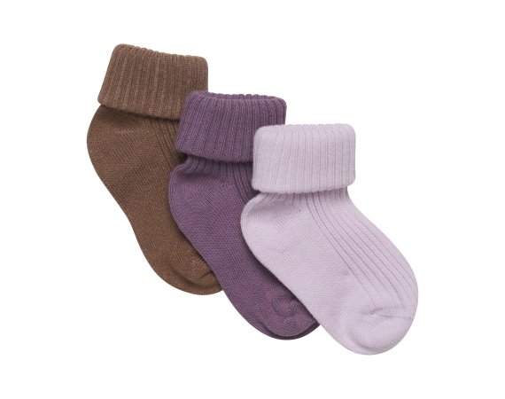 Sæt med 3 par baby strømper i brun og lilla fra Minymo.