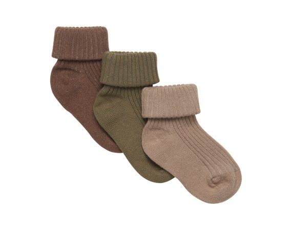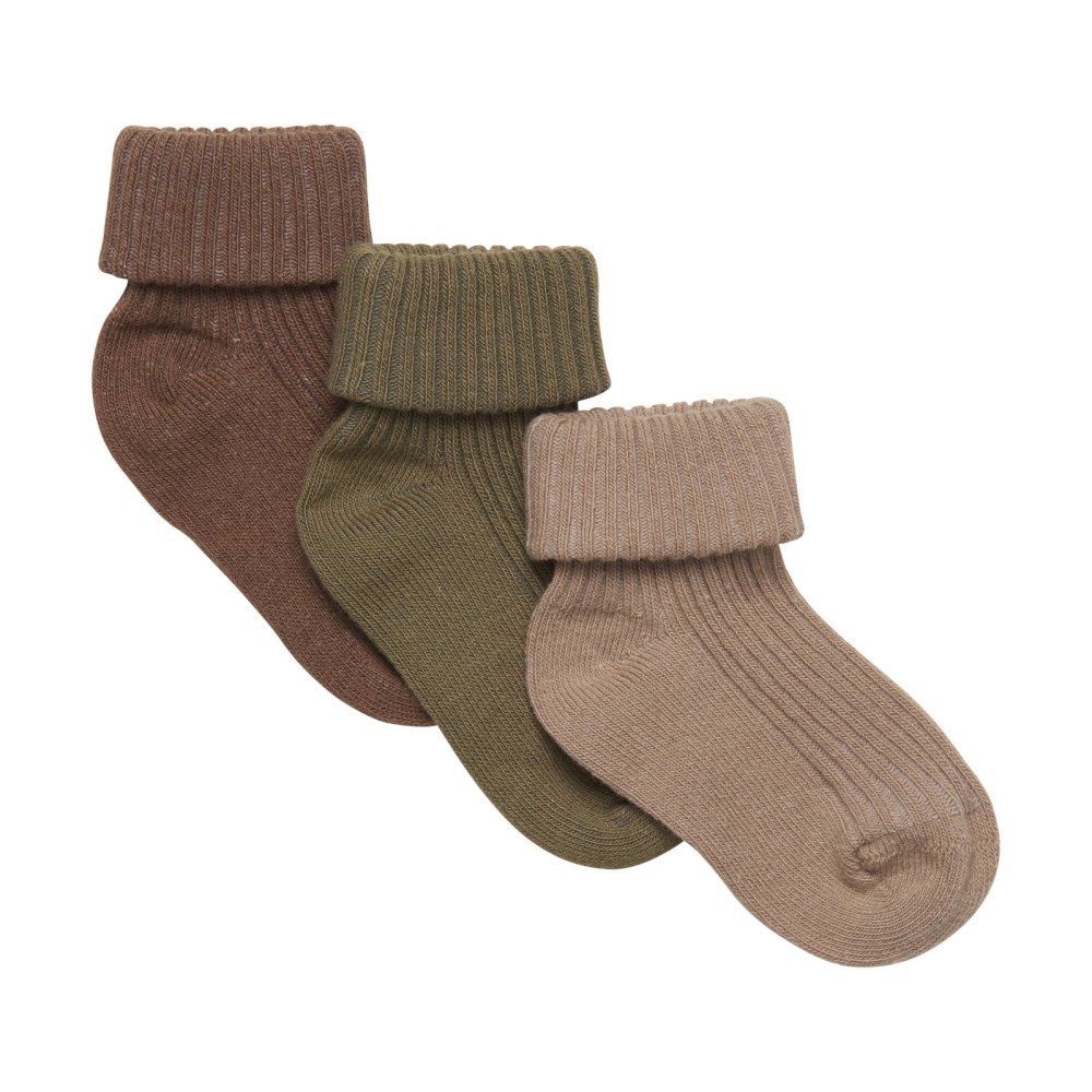Sæt med 3 par baby strømper i brun og grøn fra Minymo.