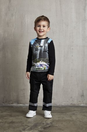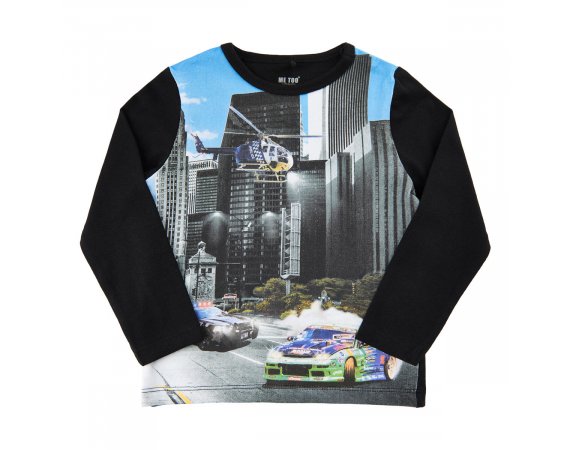 Sej langærmet t-shirt med flot print med racerbil og politibil på fronten
