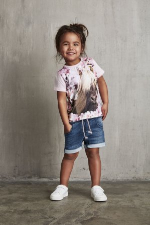 Sej kortærmet t-shirt med flot blomster og hesteprint på fronten