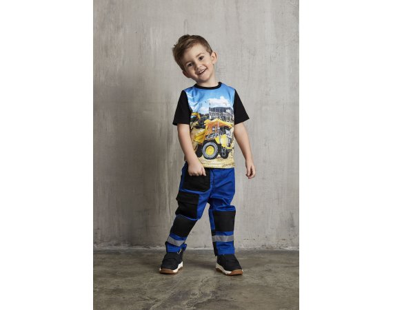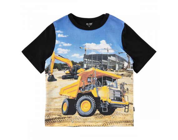 Sej t-shirt med korte ærmer og flot print med store entrepenør maskiner på fronten