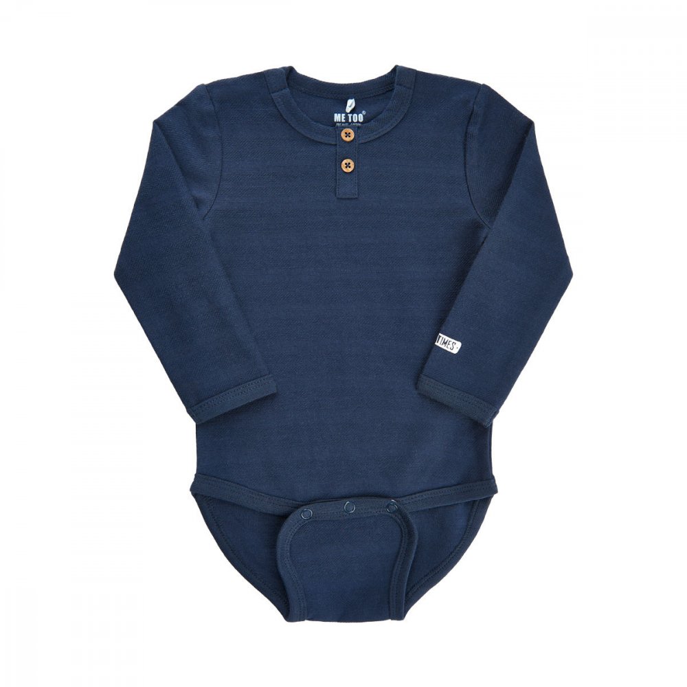 Skøn ensfarvet Me Too body med struktur af vandrette striber og et lille hvidt print med teksten - Good Times