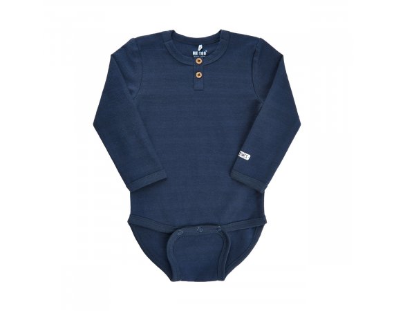 Bodyen har lange ærmer og lukkes med trykknapper på skulder og mellem ben.