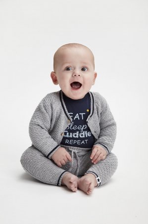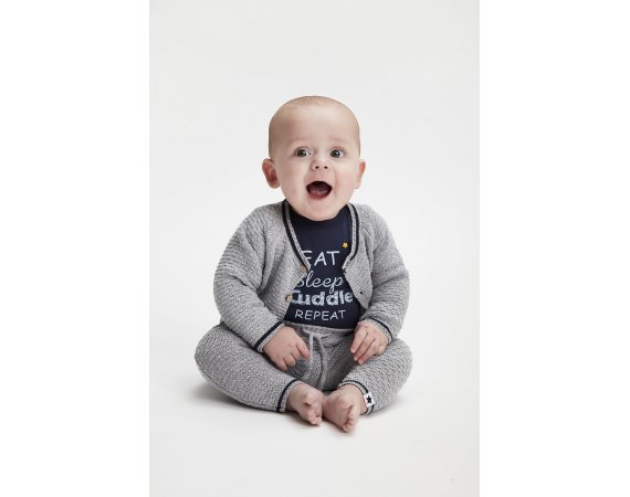 Fin kontrastfarvet stribe ved hals, bund og håndled.