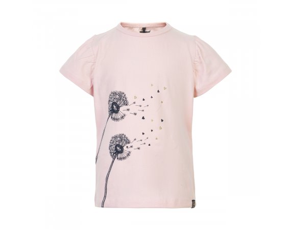Pink T-shirt with photo print of dandelions and hearts, easy to style with both skirt and trousers. The t-shirt has press studs on the shoulder from sizes 80-92.