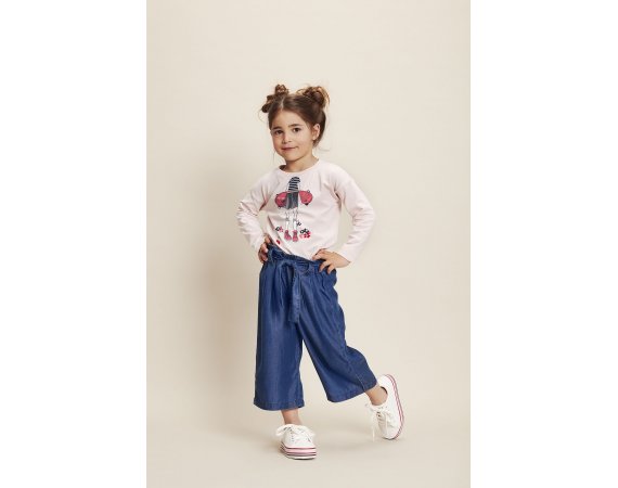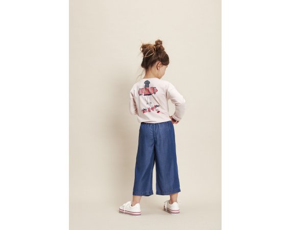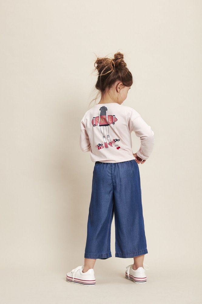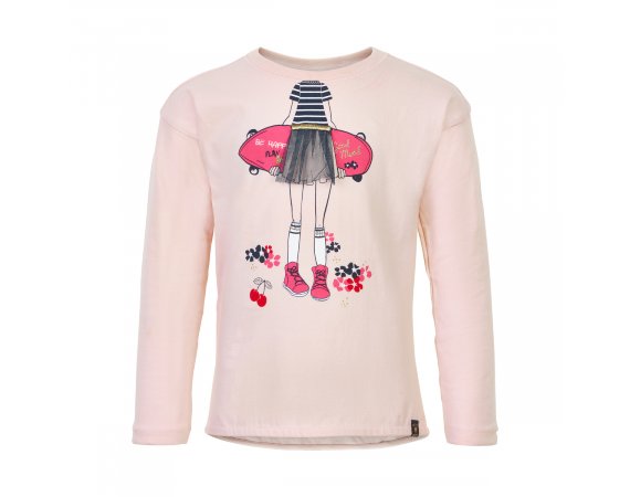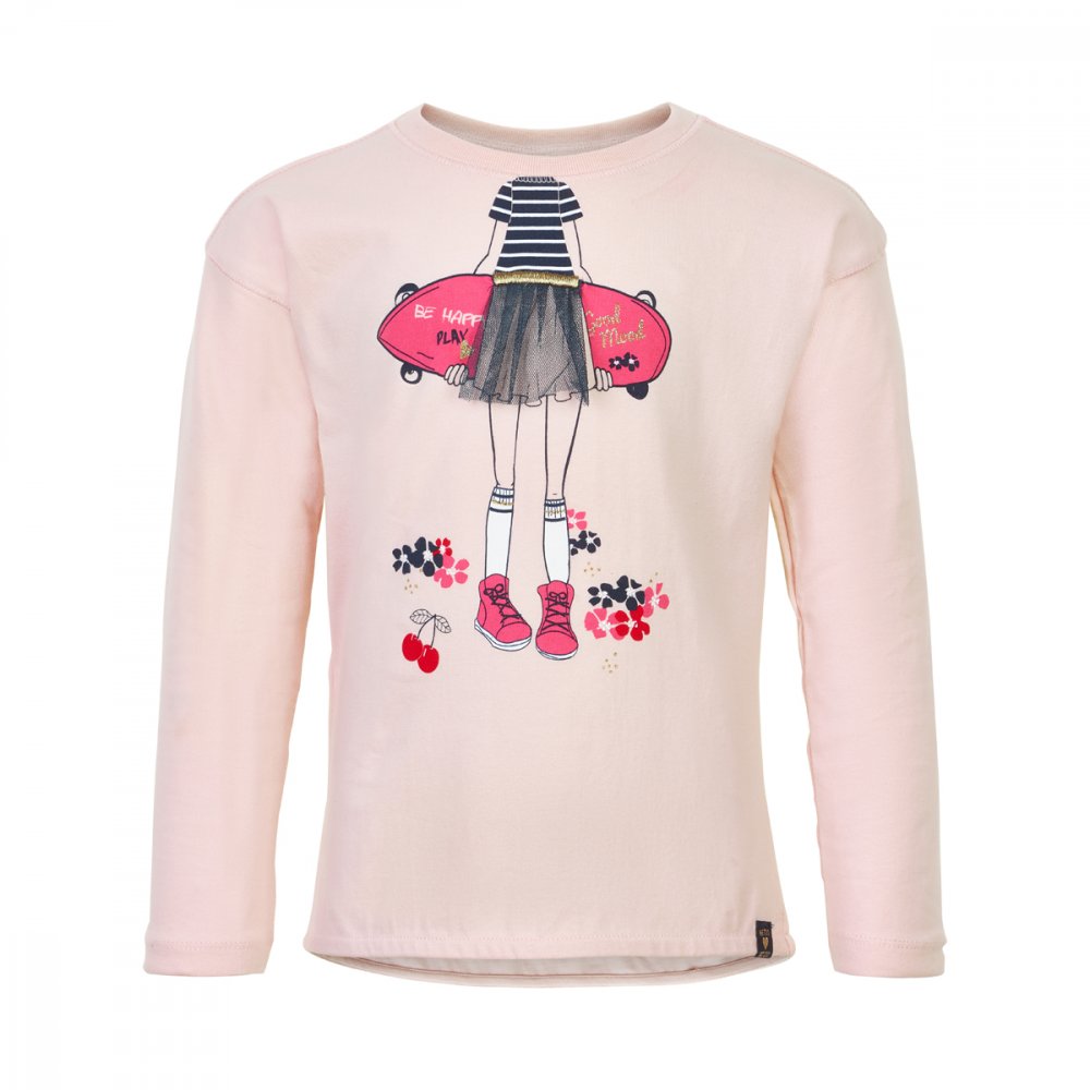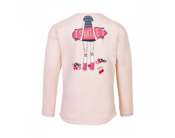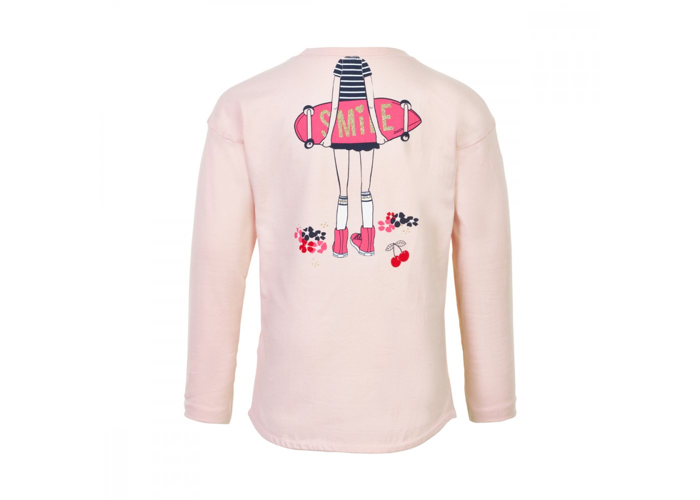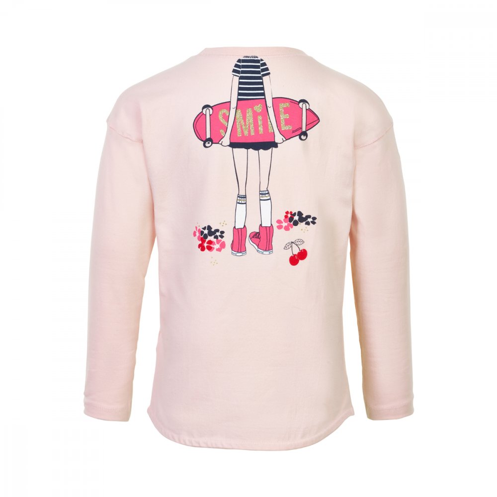 Sød langærmet og lyserød t-shirt med fotoprint af en skaterpige på front og bagpå