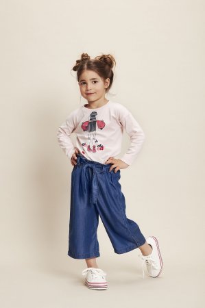 T-shirten har yndigt påsyet tyl og glimmer stikning og den kan styles med både bukser og nederdel. T-shirten har trykknapper på skulder fra str. 80-92.