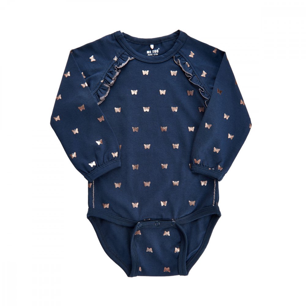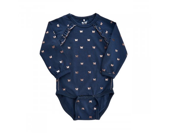 Skøn body med lange ærmer og all-over print af sommerfugle