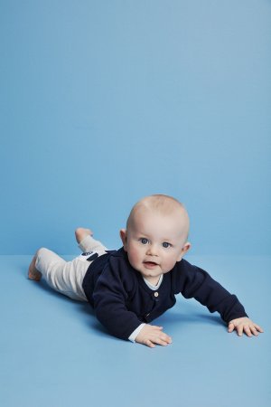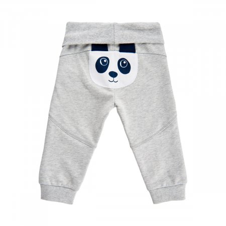 Stretch bukser med bred elastikkant, lommer foran og sej panda bag på bukserne.