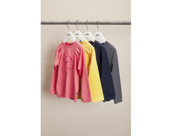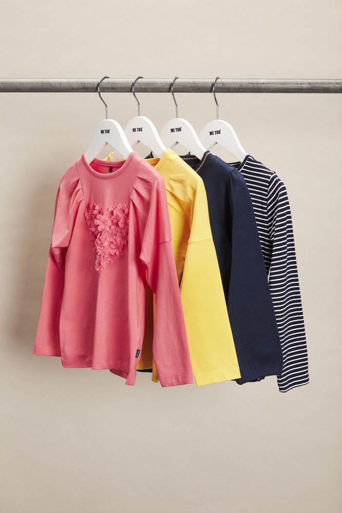 T-shirten har trykknapper på skulder fra str. 80-92.