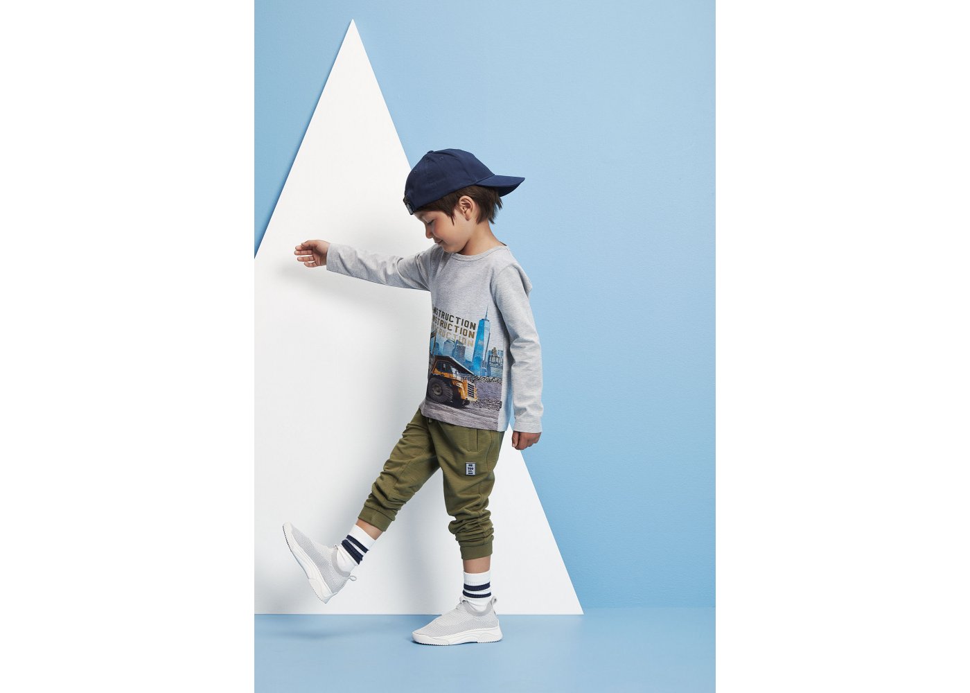The t-shirt has long sleeves and push buttons at the shoulder from sizes 80-92.