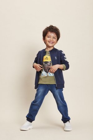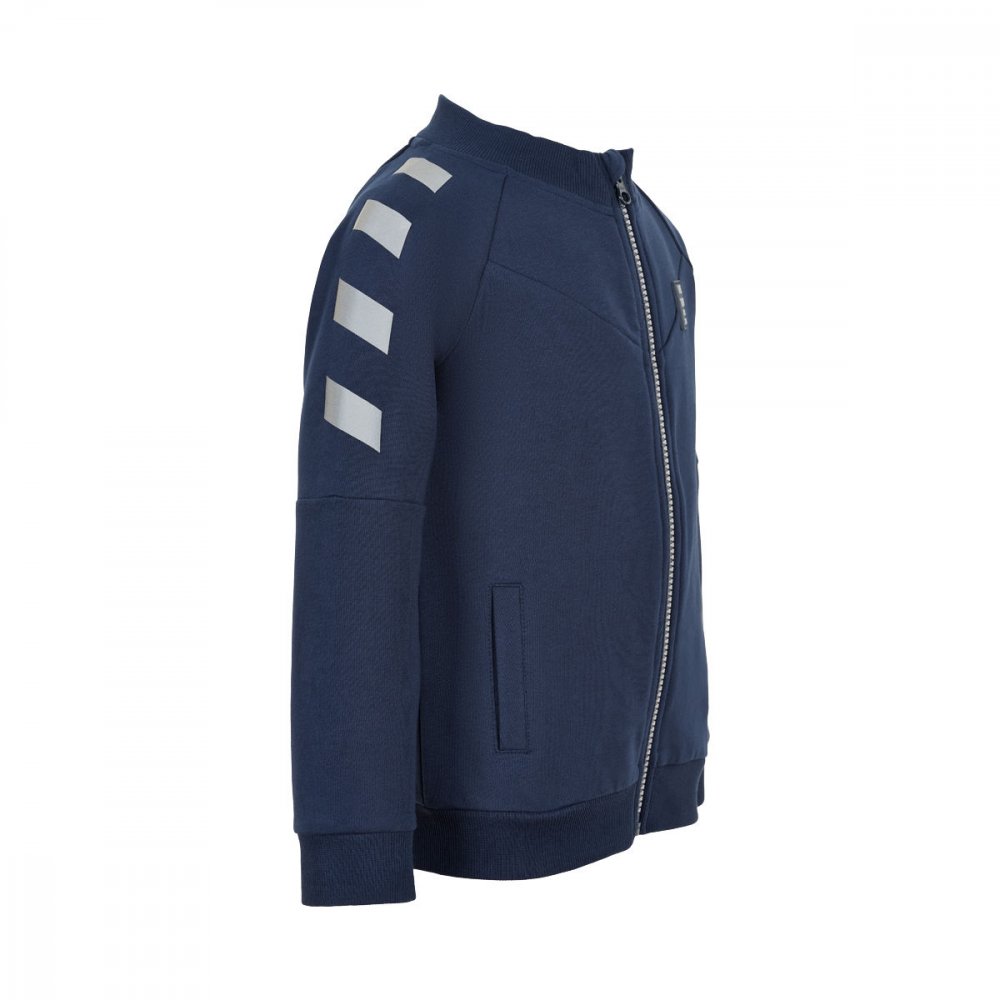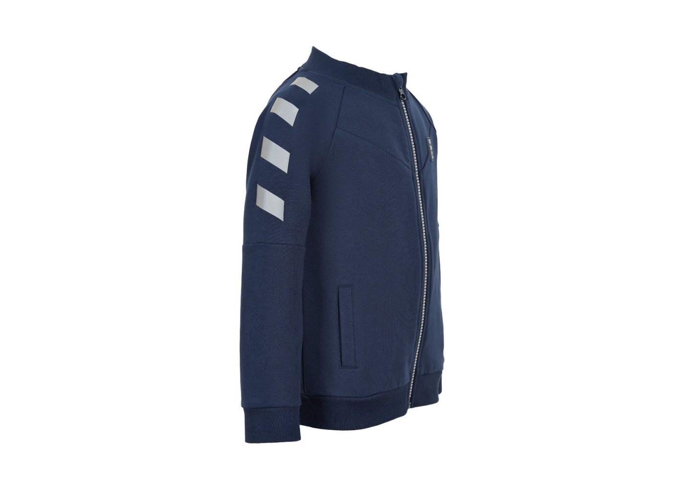 Cardigan har lommer, rib ved alle åbninger og fint print med striber på ærmer.