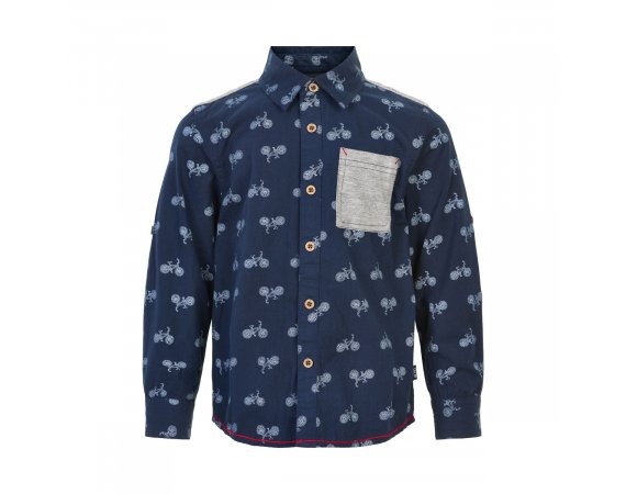 Skjorten har en sej detalje på ryggen og all-over-print med cykler.