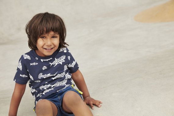 ME TOO T-Shirt SS, Dress Blue med Haj og Krabbe