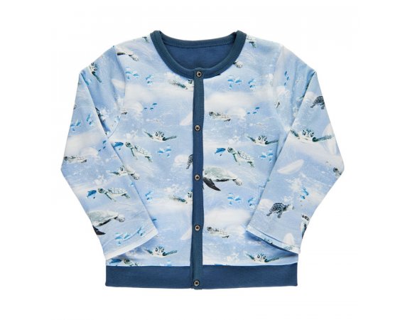 Super sød og smart lyseblå cardigan med skildpadde print