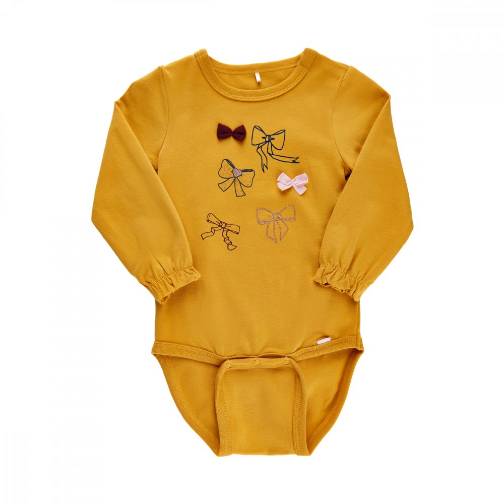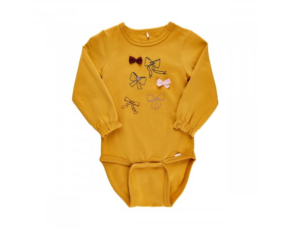 Yndig langærmet body med sløjfe print og påsyede sløjfer