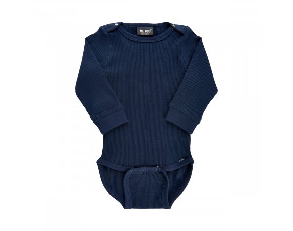Bodyen har bred ribkant ved håndled og fast kant i hals og ved ben.