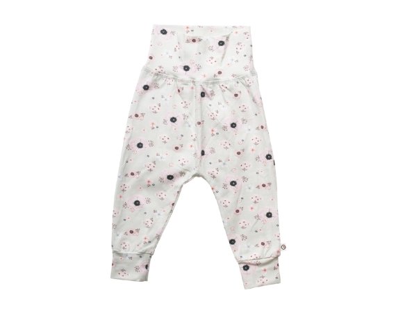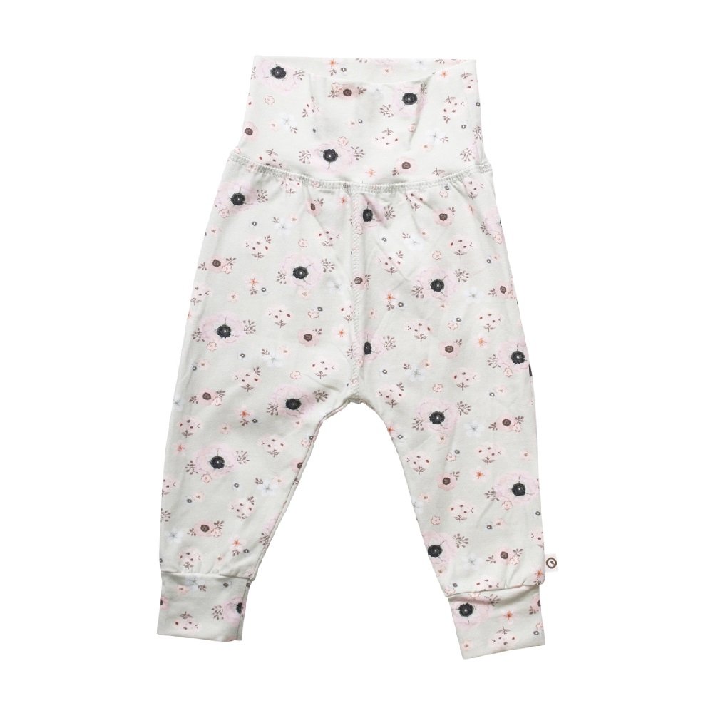 Super lækre bukser med anemone print og bred kant i livet, som ikke strammer på babys mave.