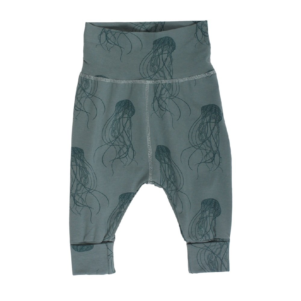 Flotte og bløde bukser med en bred rib i liv og ved ankler og print af vandmænd fra Müsli by Green Cotton