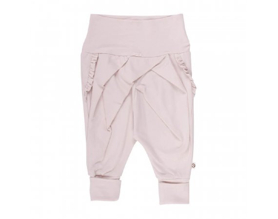 Bukserne har en bred elastikkant i liv og omkring ankler, som kan foldes efter ønske.