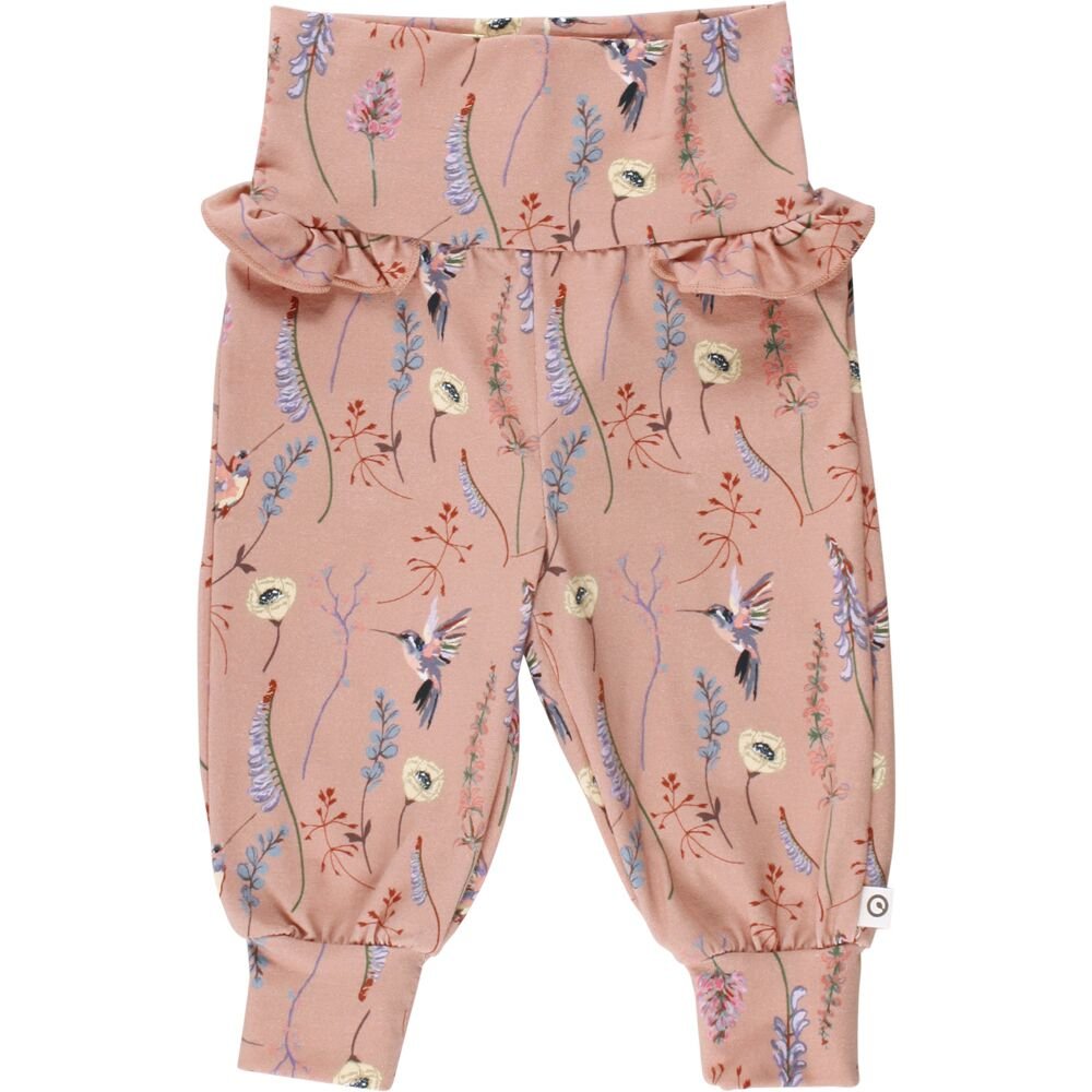 Smarte bukser med print af kolibrier og søde flæse-detaljer