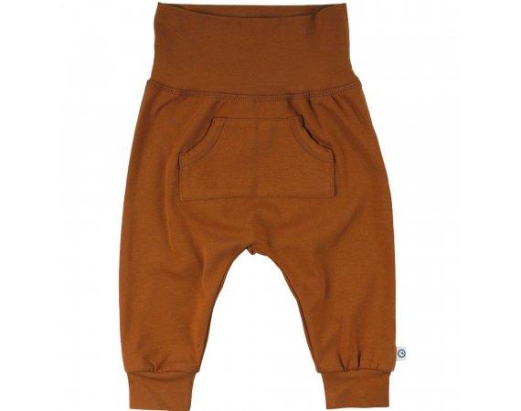 Lovely soft and loose basic trousers with a large pocket, a broad ribbed waistline, and broad ribbed edges at the ankles from müsli by Green Cotton.