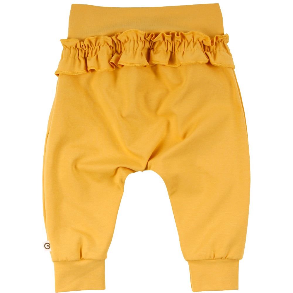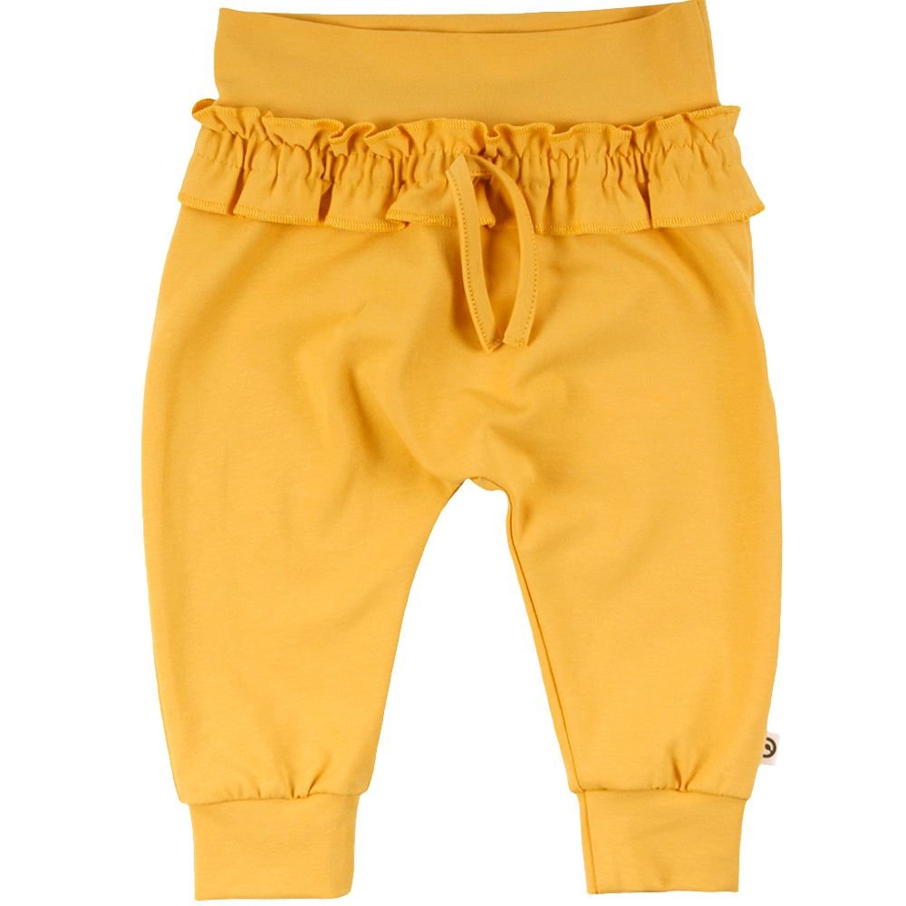 Lækre bløde bukser med flæsebånd og snor. Buksen har ribkant ved ankler og en bred ribkant i livet. Buksen er fremstillet i en lækker, blød og strækbar bomuldskvalitet, der gør den behagelige at have på.