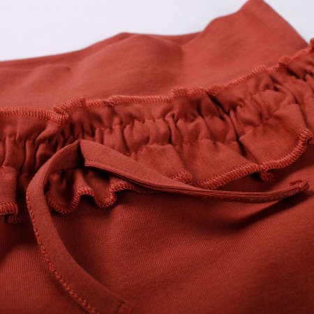 The trousers have ribbed edges by the ankles and a broad ribbed waistband. The trousers are made in a lovely, soft, and stretchy cotton which makes them comfortable to wear.