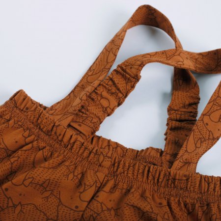 Lækre bløde bukser med seler og fint print med næsehorn.