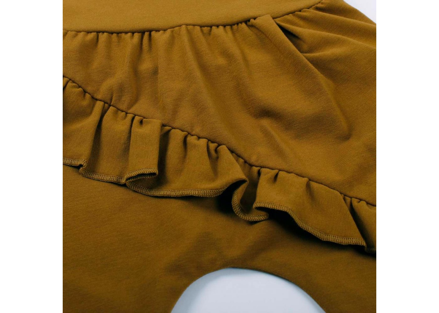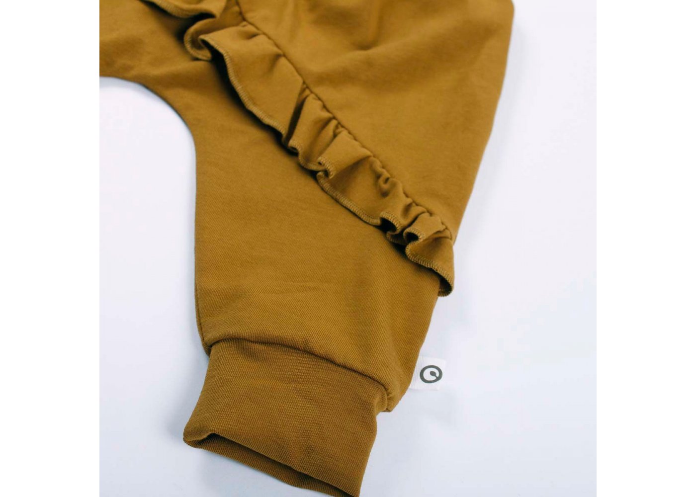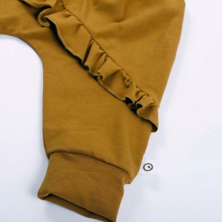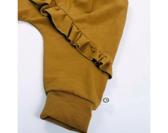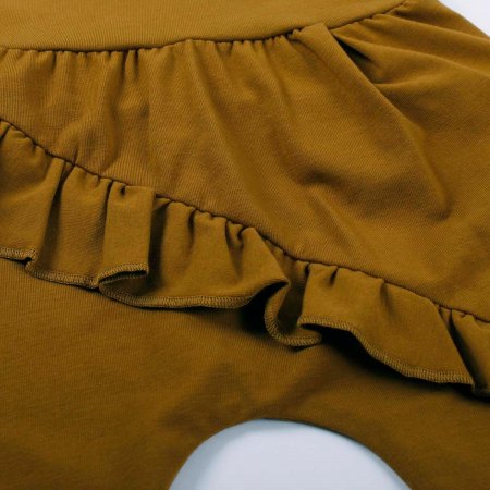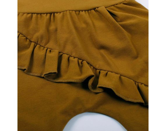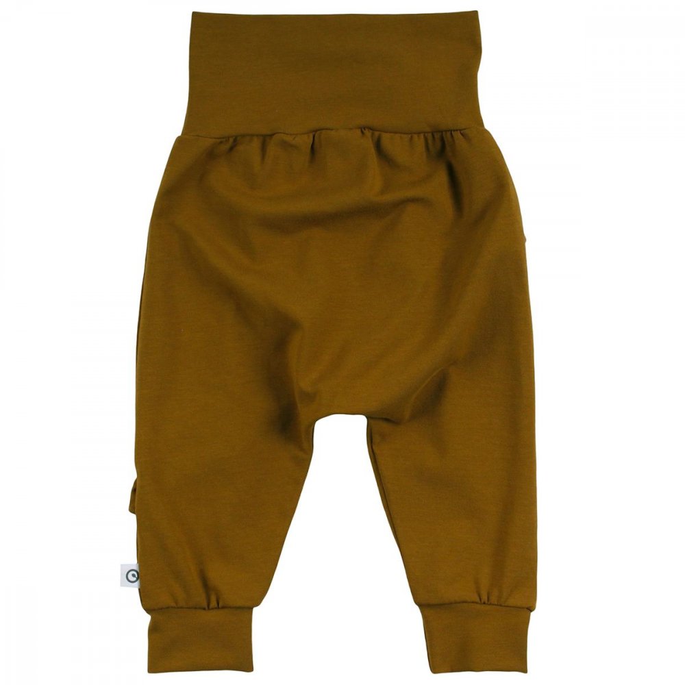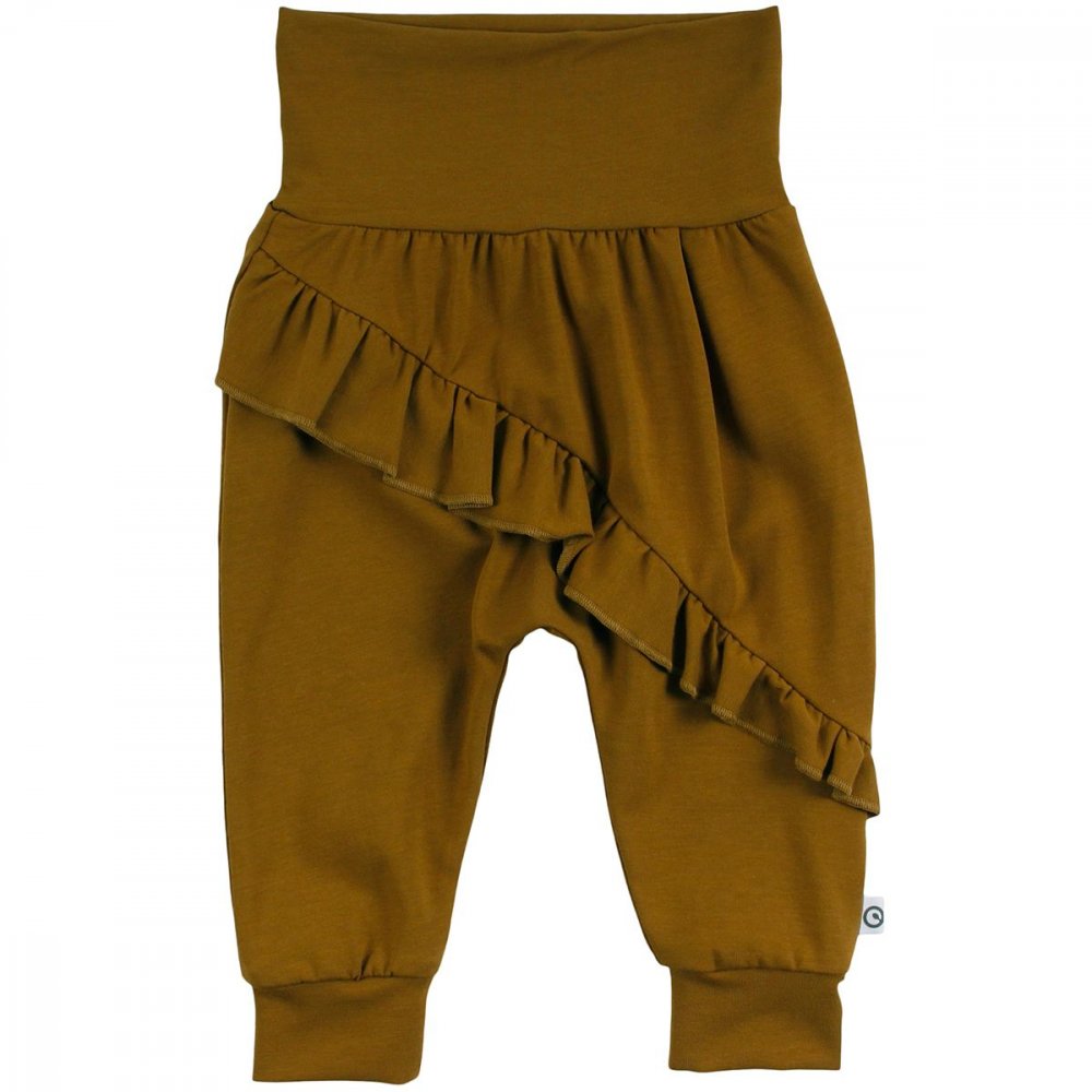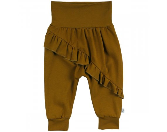 Lækre bløde og løse basis-bukser med flæse og vidde. Buksen har ribkant ved ankler og en bred ribkant i livet, der kan foldes efter behov. Buksen er fremstillet i en lækker, blød og strækbar bomuldskvalitet, der gør dem behagelige at have på.