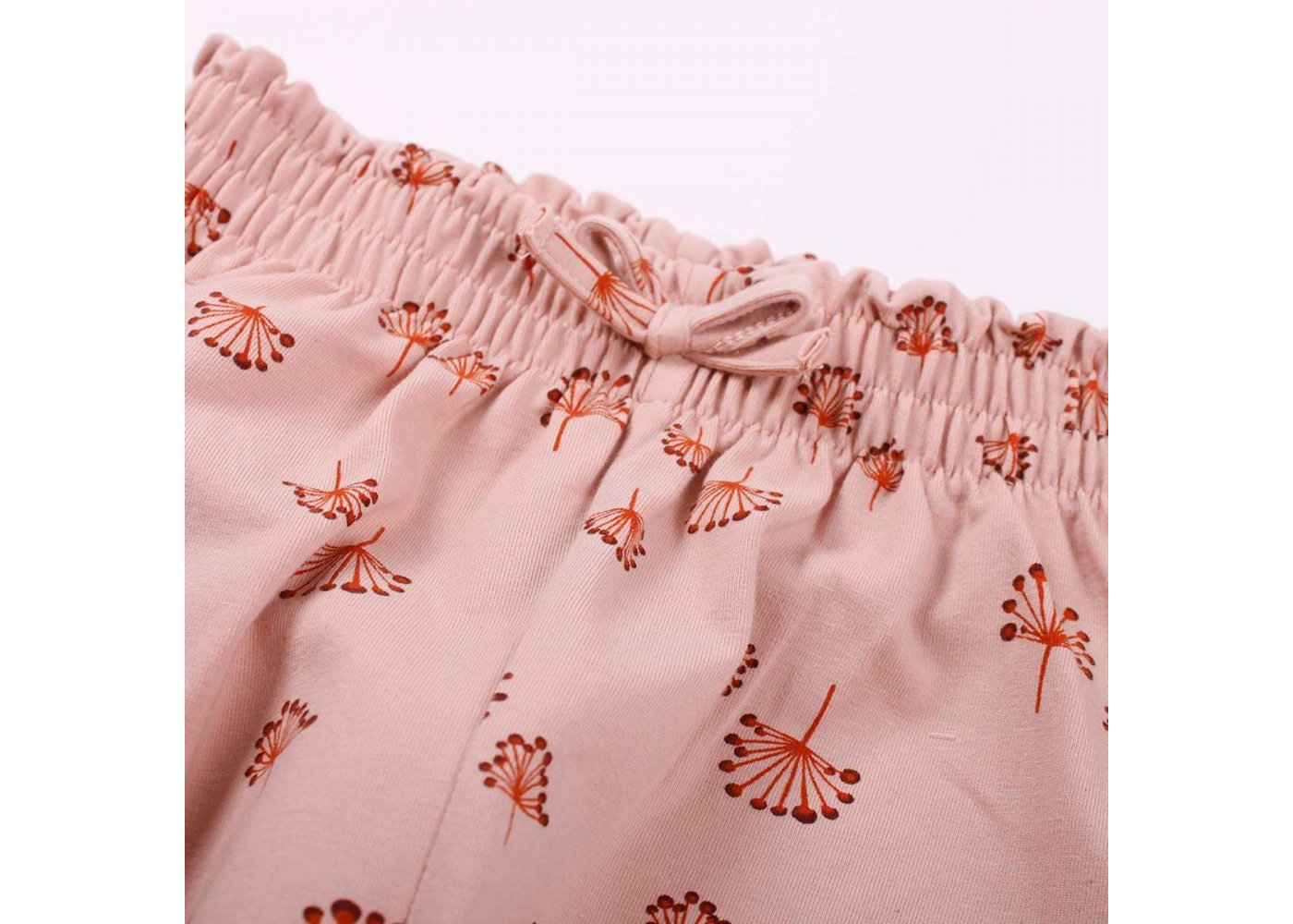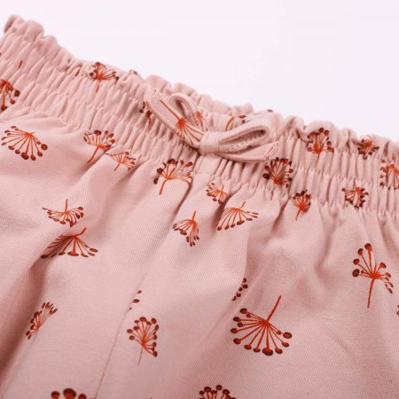 Fine feminine bukser fra Müsli med sødt blomsterprint. Buksen har en sød pyntesløjfe og en bred rynke elastik i taljen, og er fremstillet i en lækker, strækbar bomulds kvalitet, der sikrer en god og behagelig pasform.