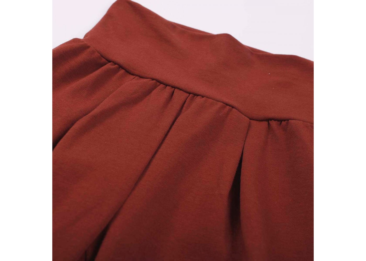 Buksen har en bred elastisk kant i talje, som kan foldes efter behov.