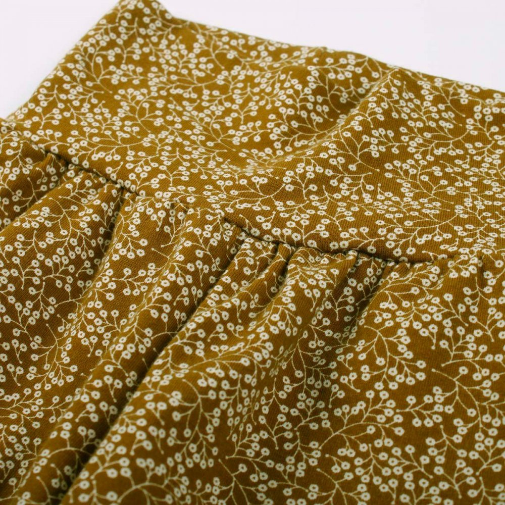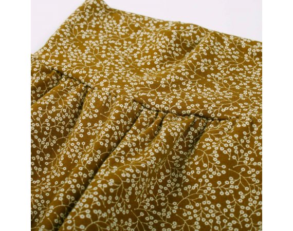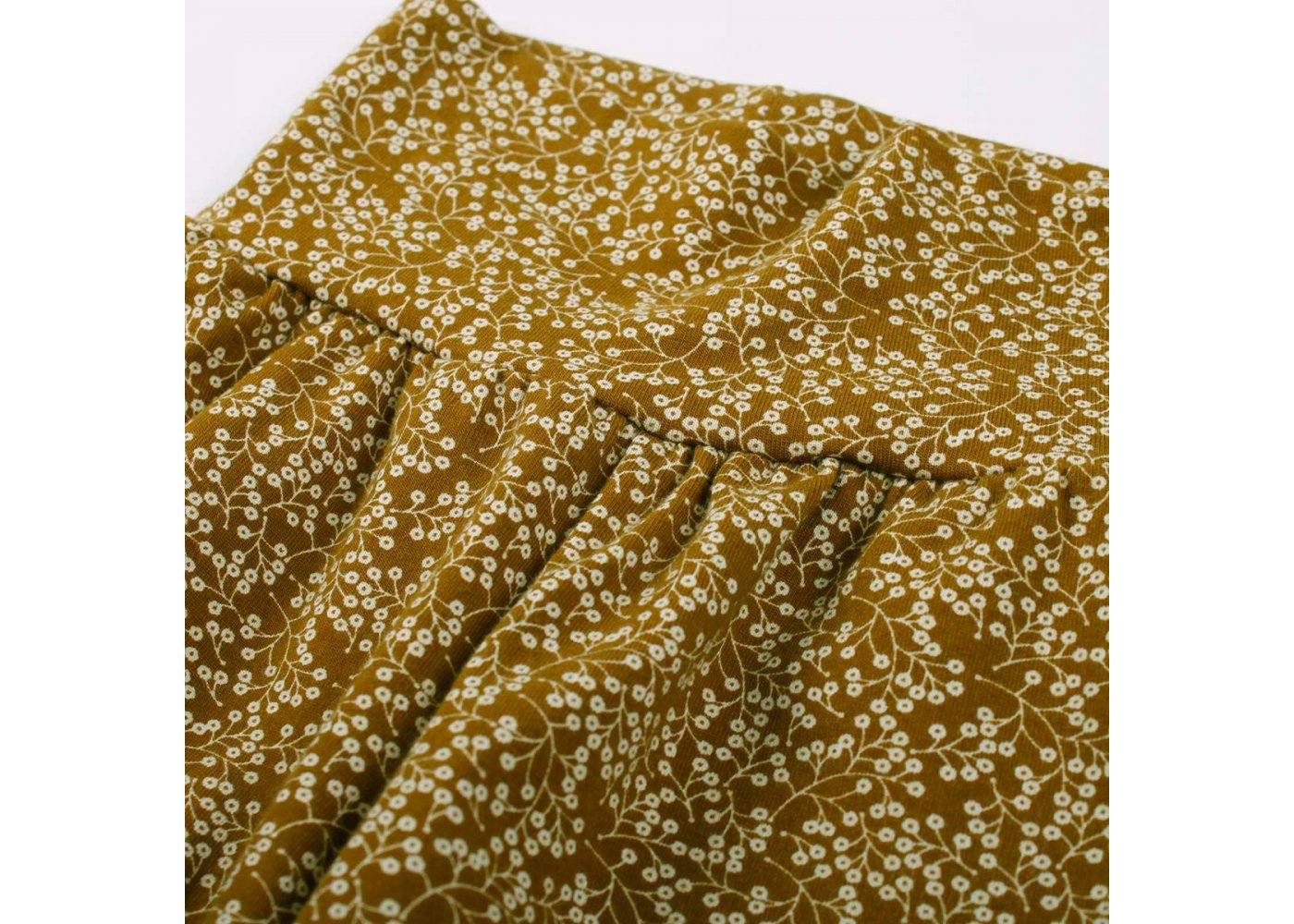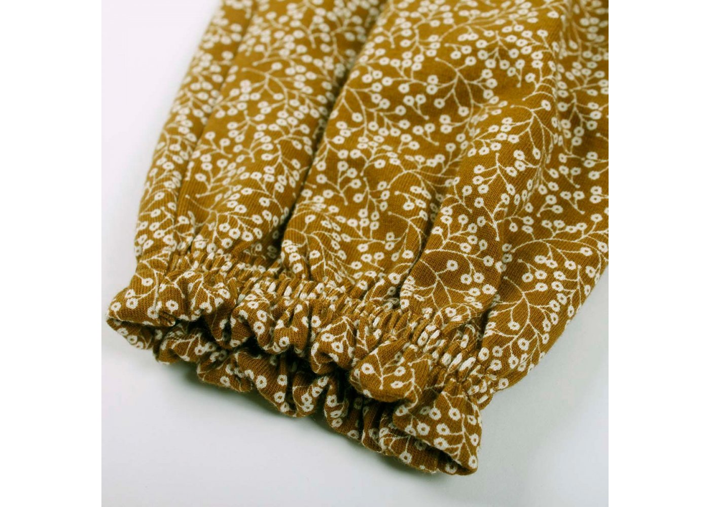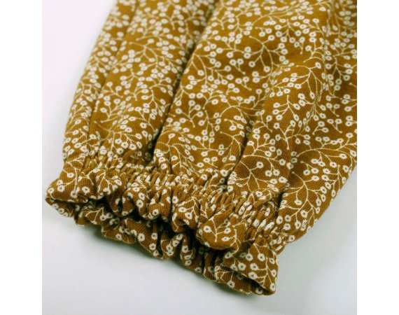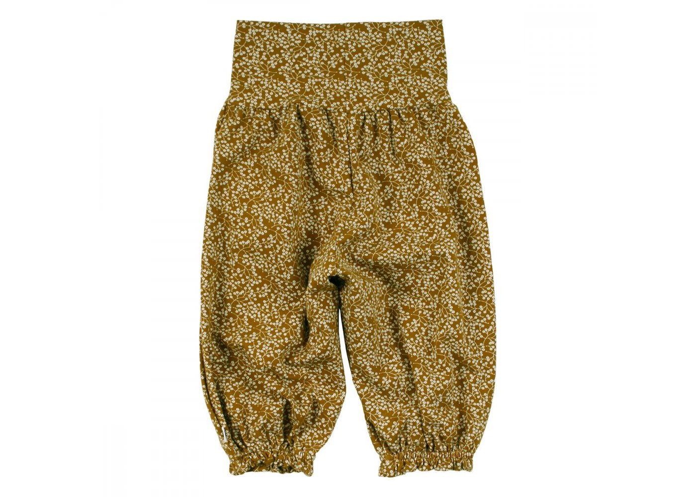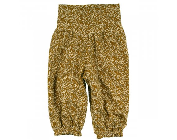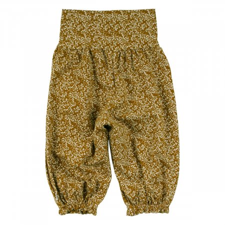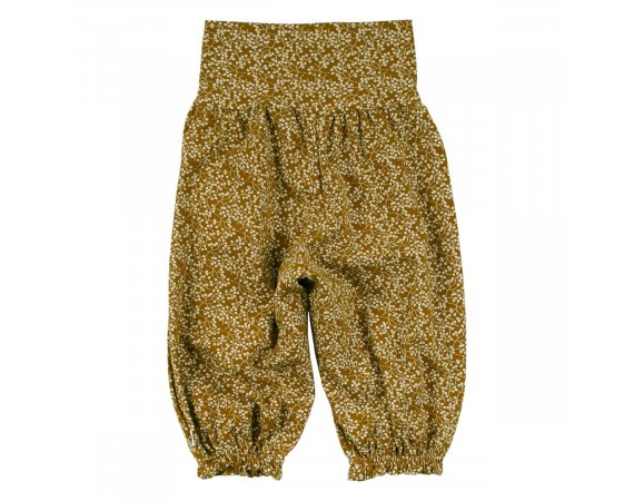 Søde Müsli bukser med blomsterprint og rynkeelastik ved ankler.