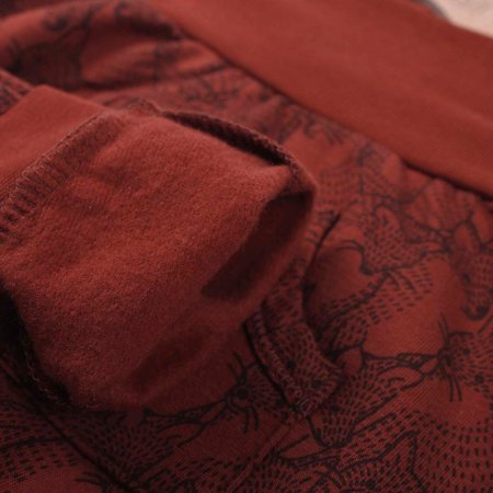 Buksen har en bred elastisk kant i talje, som kan foldes efter behov.