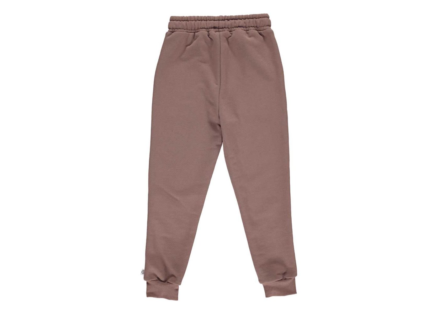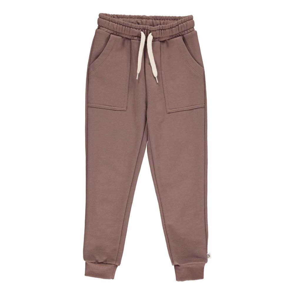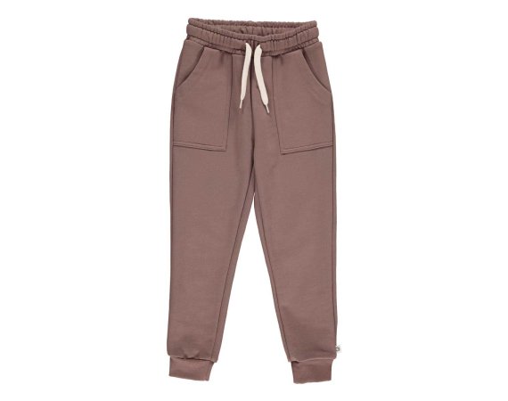 Fine bukser med lommer foran, bred elastik og bindebånd i livet og brede ribkanter ved ankler.