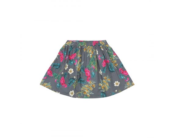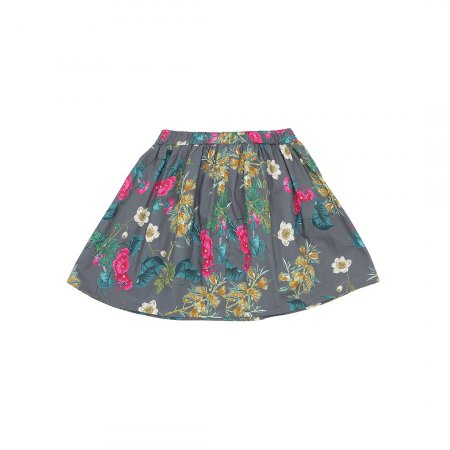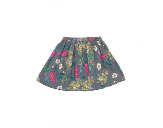 Yndig nederdel i grå med farverige blomster i kontrastfarver