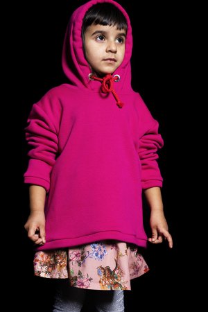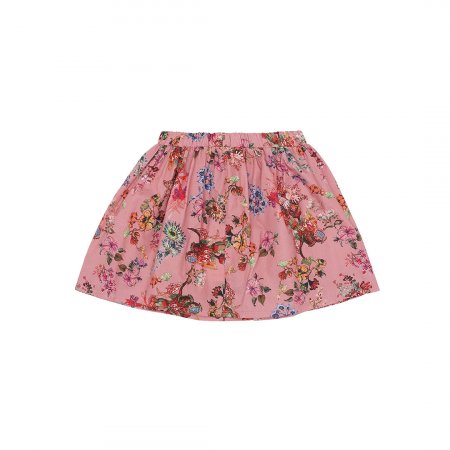 Yndig nederdel i rosa med farverige blomster i kontrastfarver