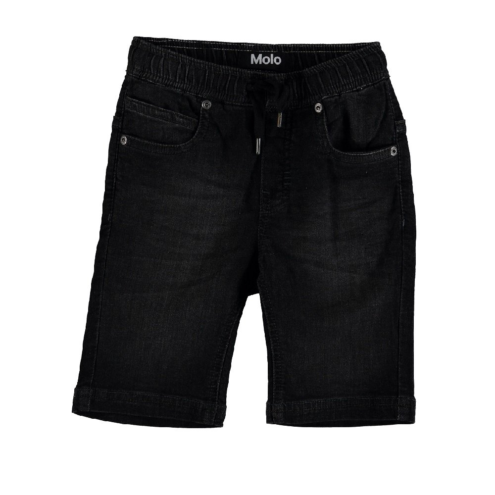 Seje shorts i sort/grå denim til drenge, der lukkes i livet med elastik og snøre