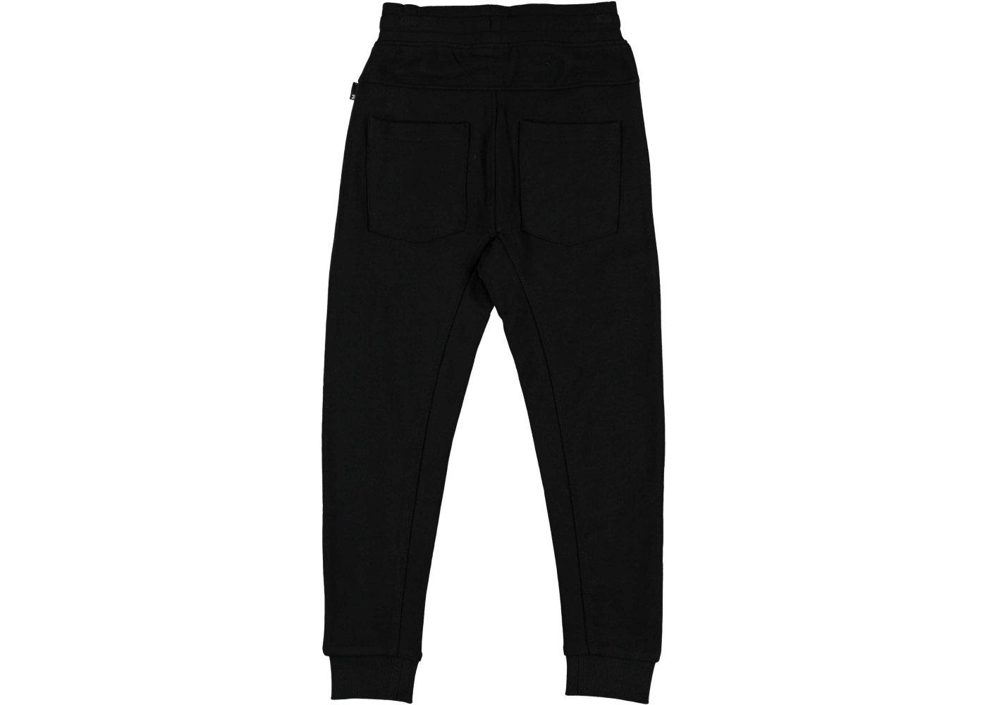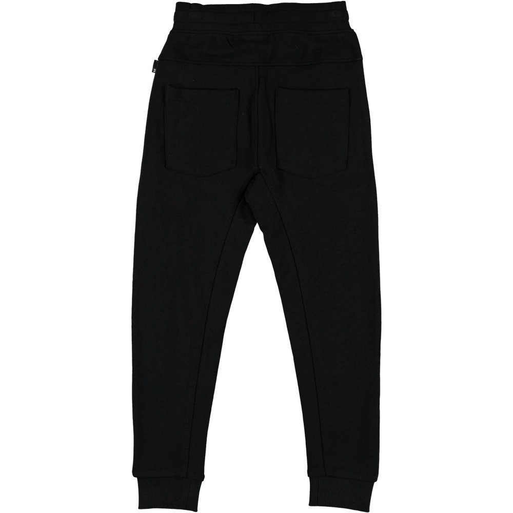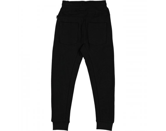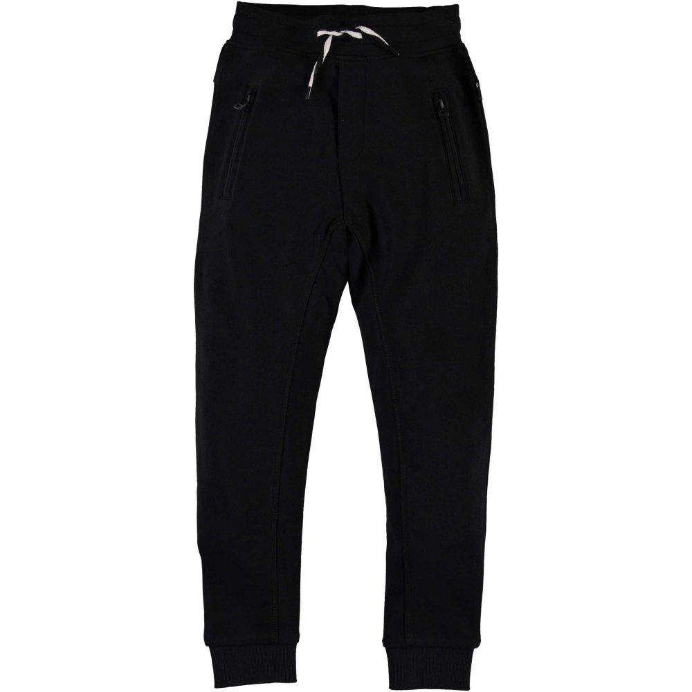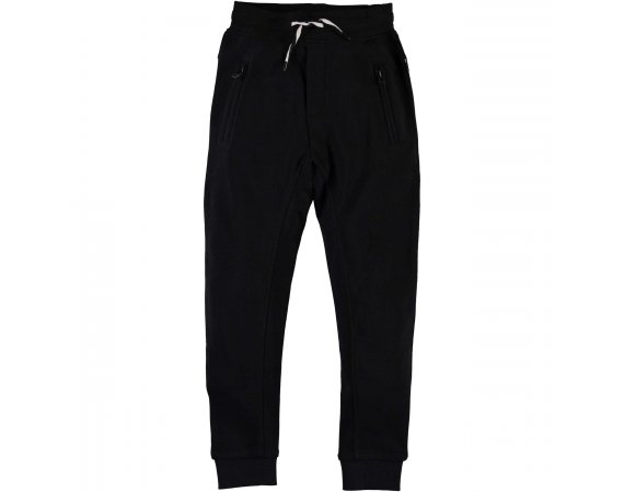 Bukser med bred elastikkant og bindebånd i livet og bred ribkant ved ankler. Desuden en dekorativ snydegylp, sidelommer med lynlås-lukning og to lommer bagpå.
