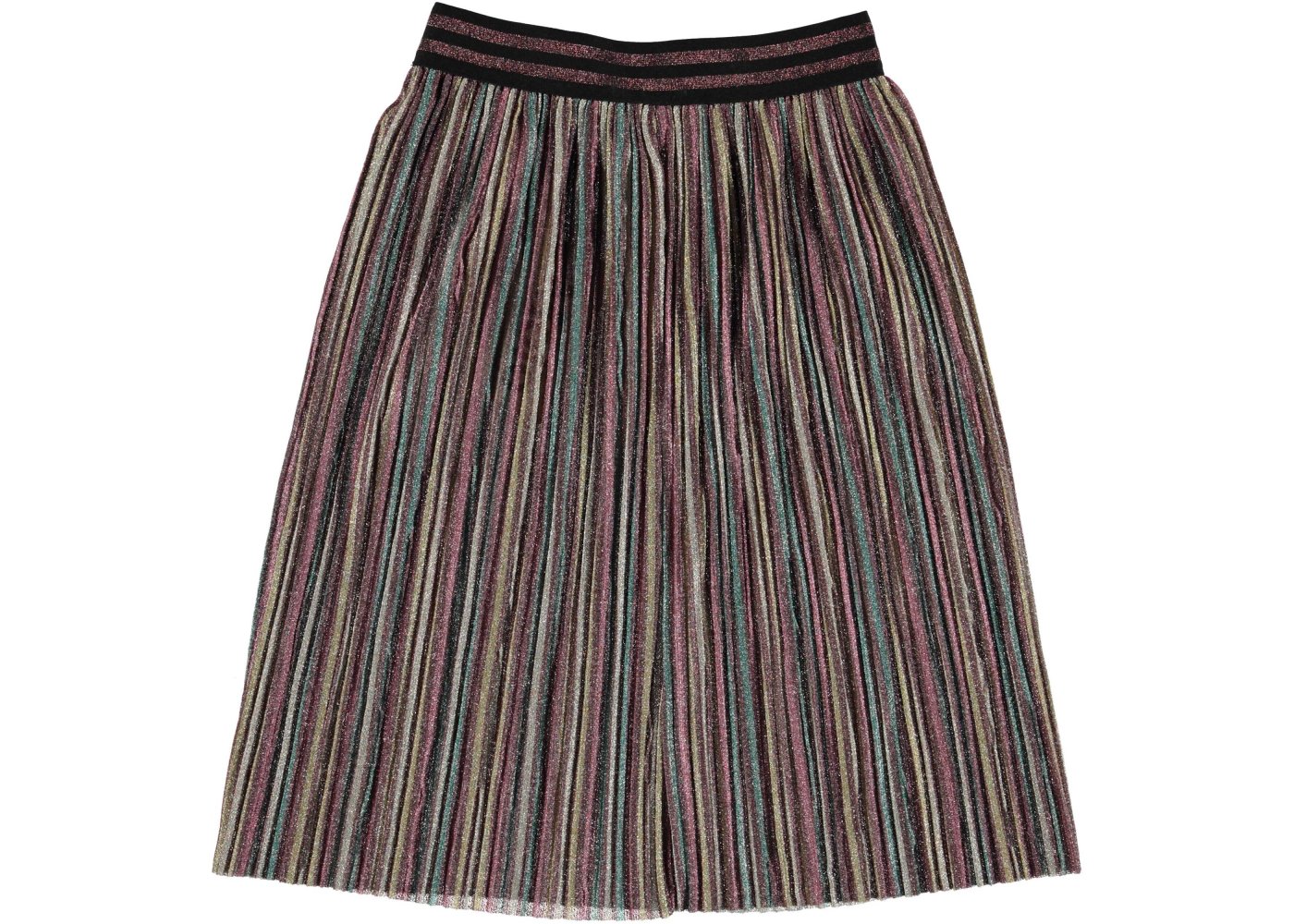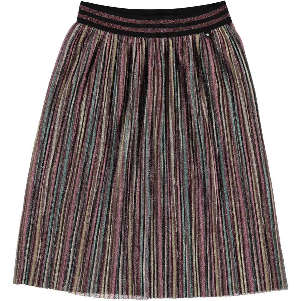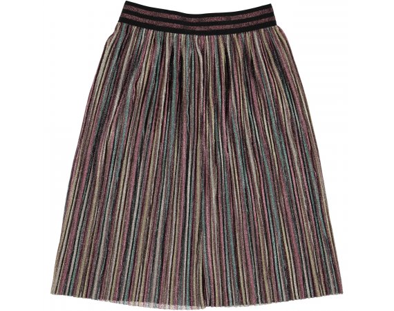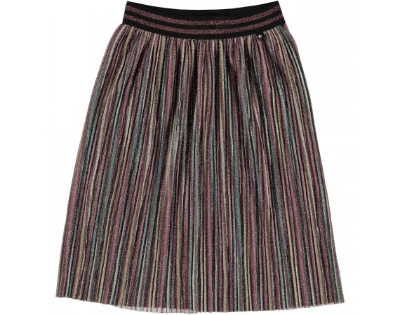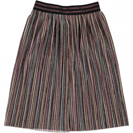 Nederdel med flotte striber i glimmer og stribet bredt talje bånd.