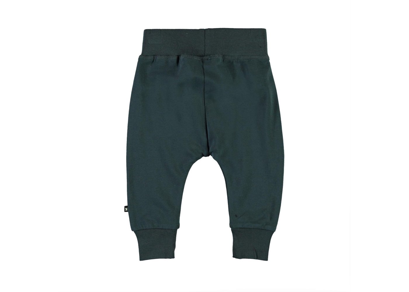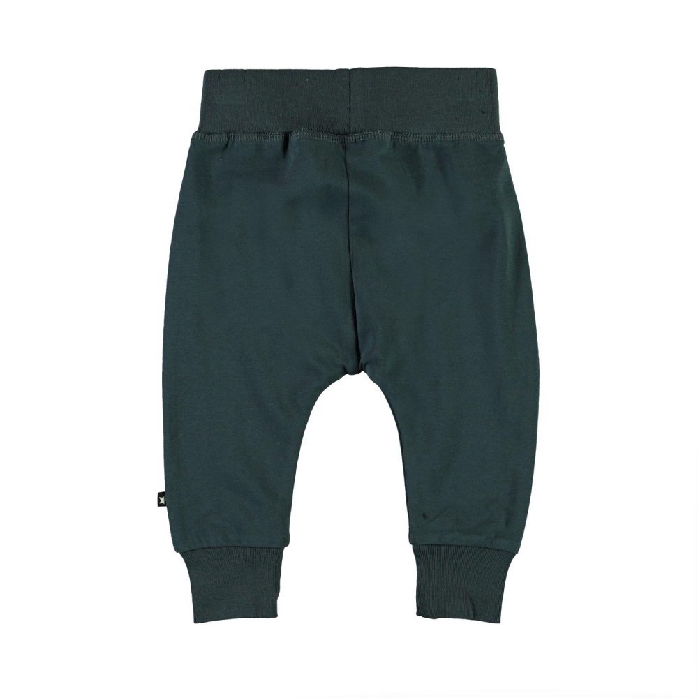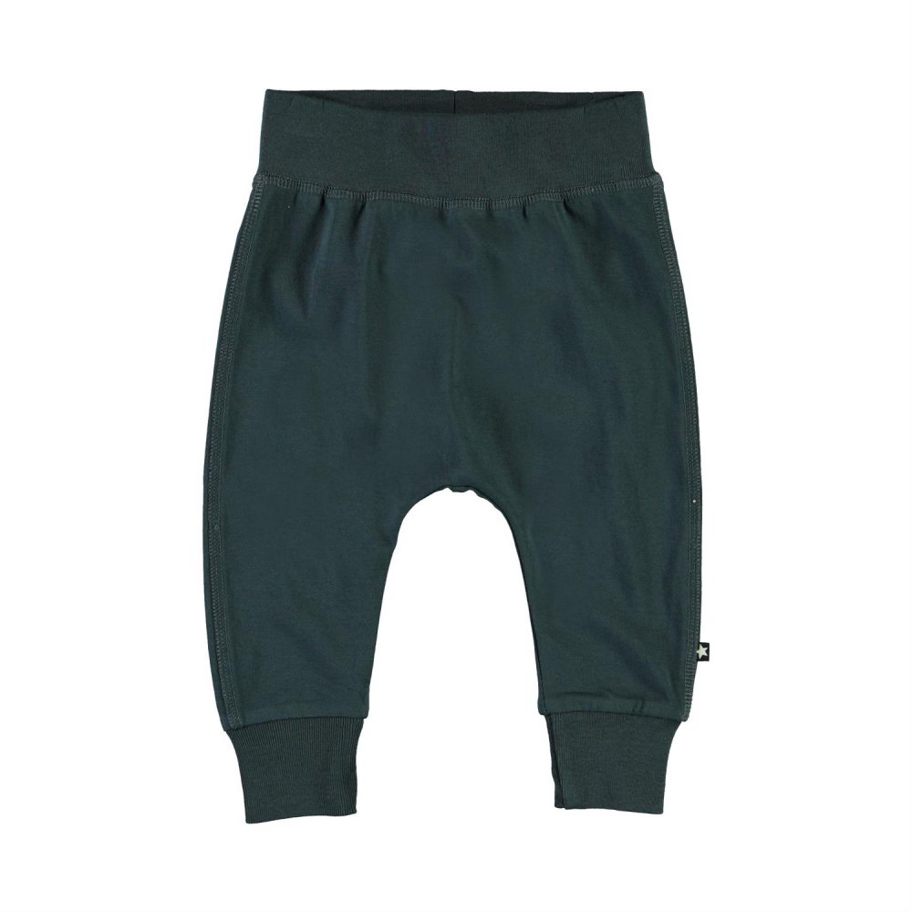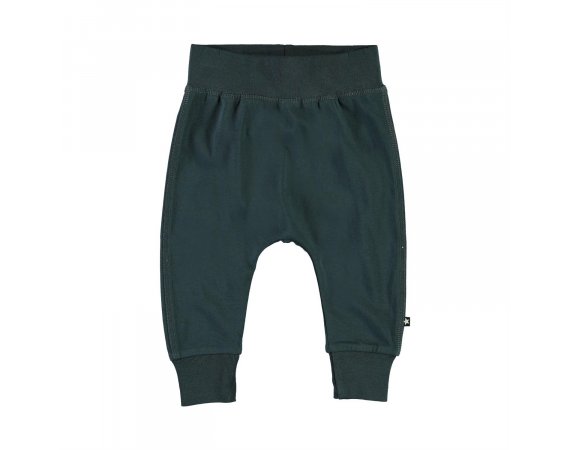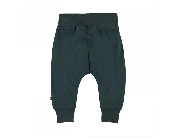 The trousers have visible seams on the front which give the trousers a sweatpants look. They have broad ribbed edges at the ankles and an elastic waistband for a comfortable fit.