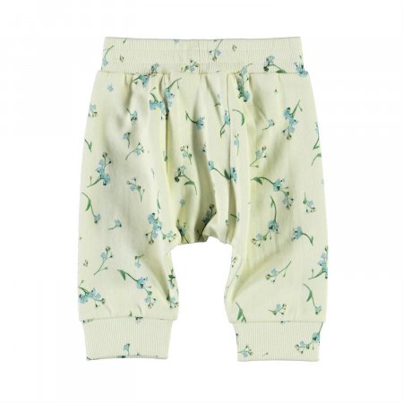 Hvide baby bukser med print af små blå forglemmigej blomster fra Molo. Buksen har en bred rib ved ankler og en bred elastisk i talje, der sikrer en god og behagelig pasform. Kombiner eventuelt bukserne med den matchende sweatshirt.