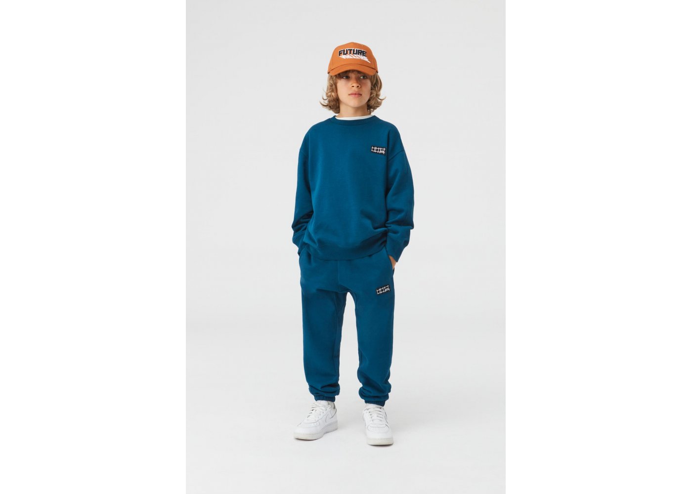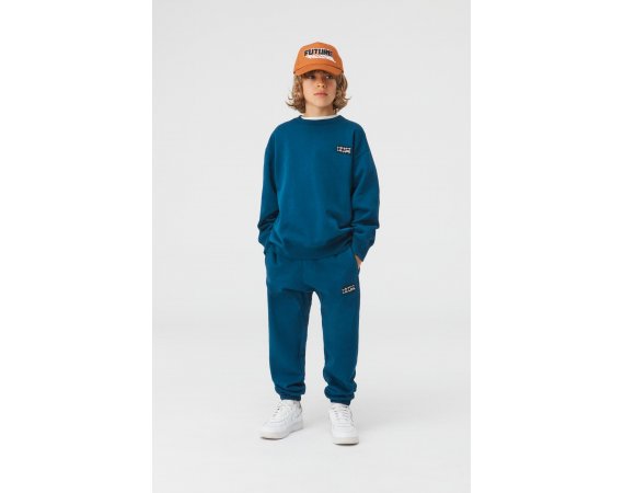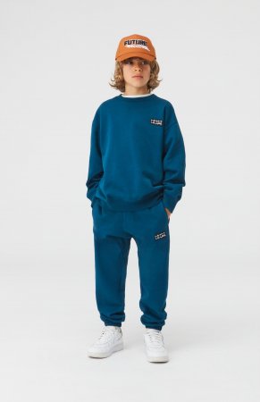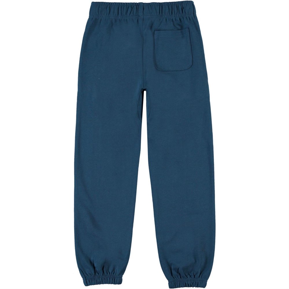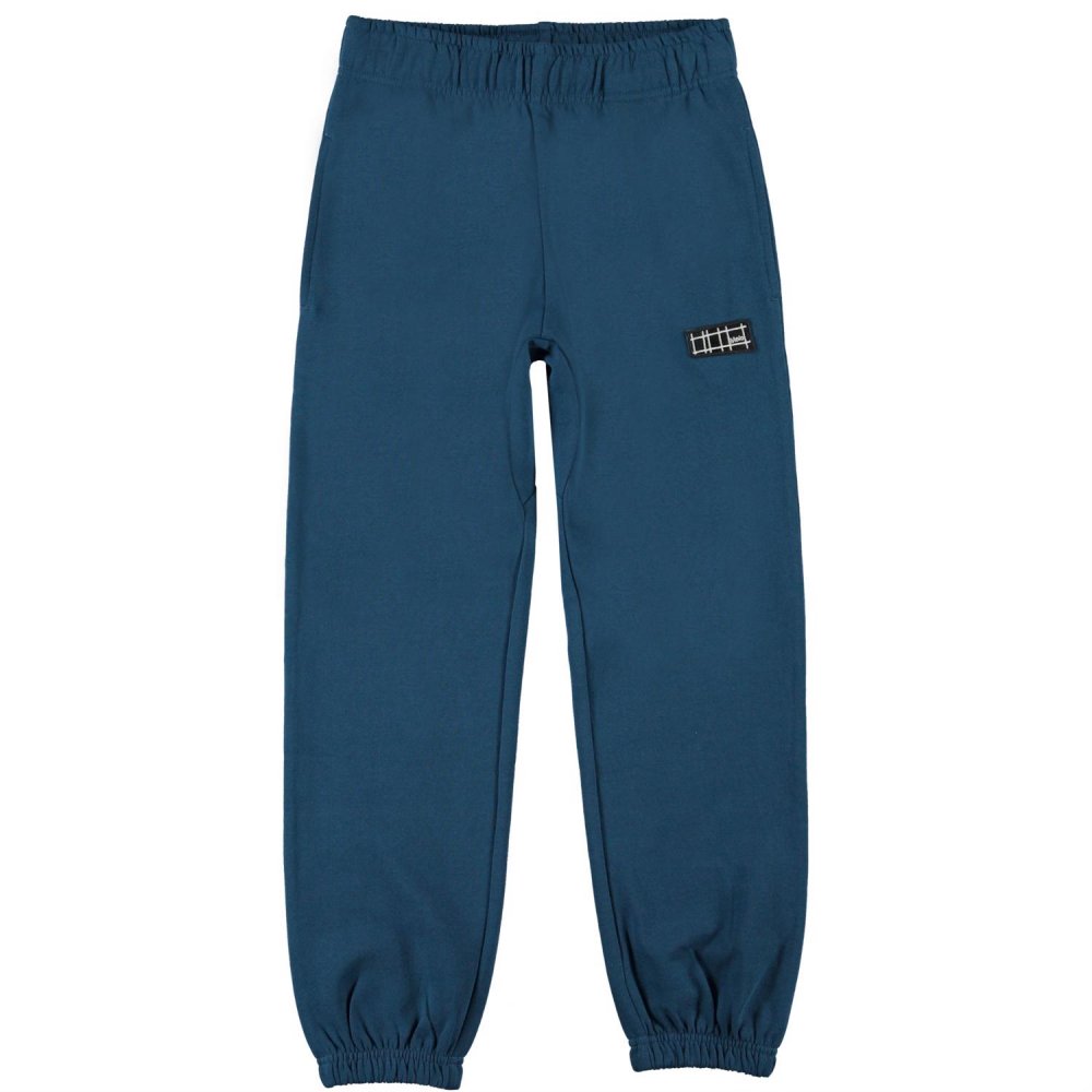 Lækre petroleumsfarvet sweatbukser med logo på venstre ben fra Molo.