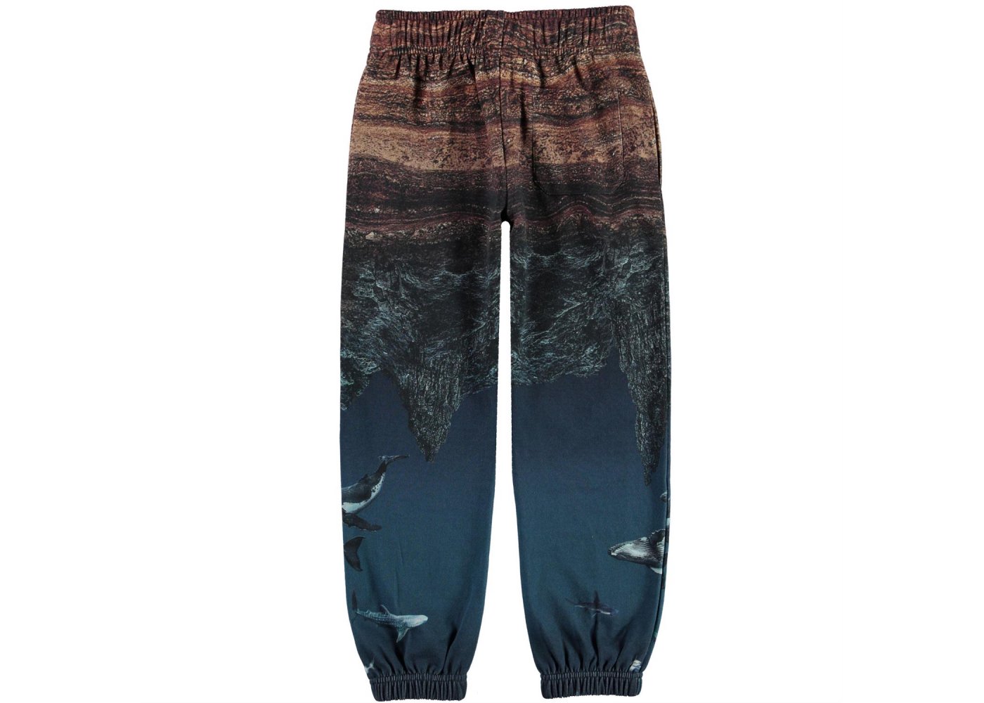 The trousers have a pretty print of rocks and a sea with fish. The trousers have an elastic waistband and elastic bands by the ankles which makes them lovely and comfortable to wear.