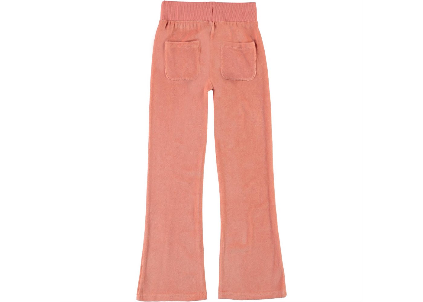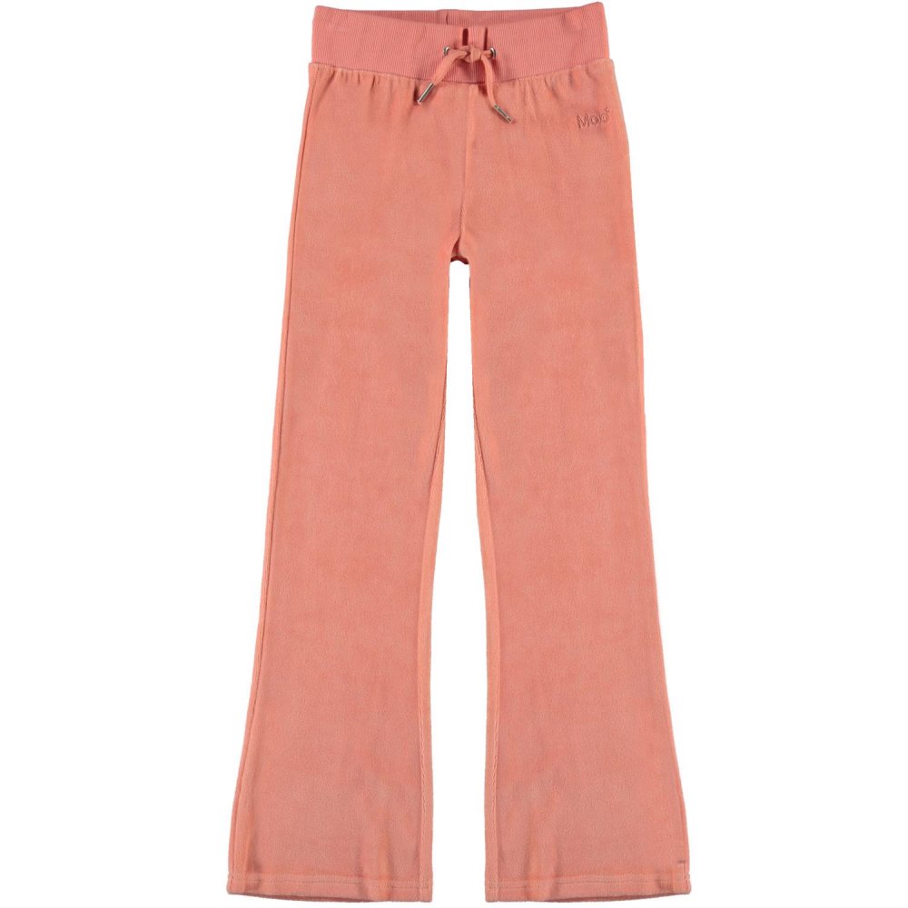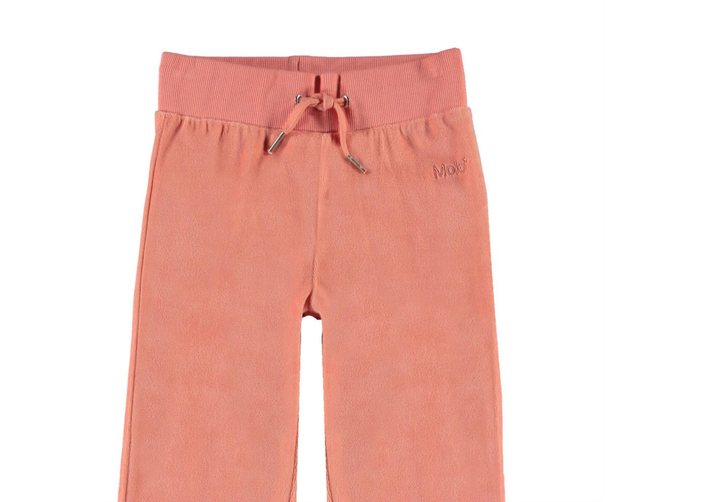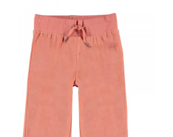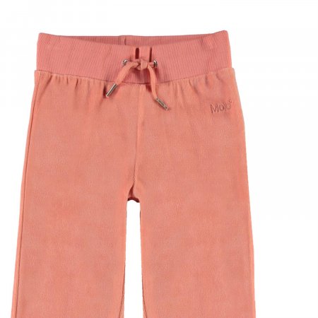 Lovely coral-coloured sweatpants from Molo. The trousers are lightly flared at the bottom, and have an elastic waistband with a tie-string. Style with the matching blouse for the full look.